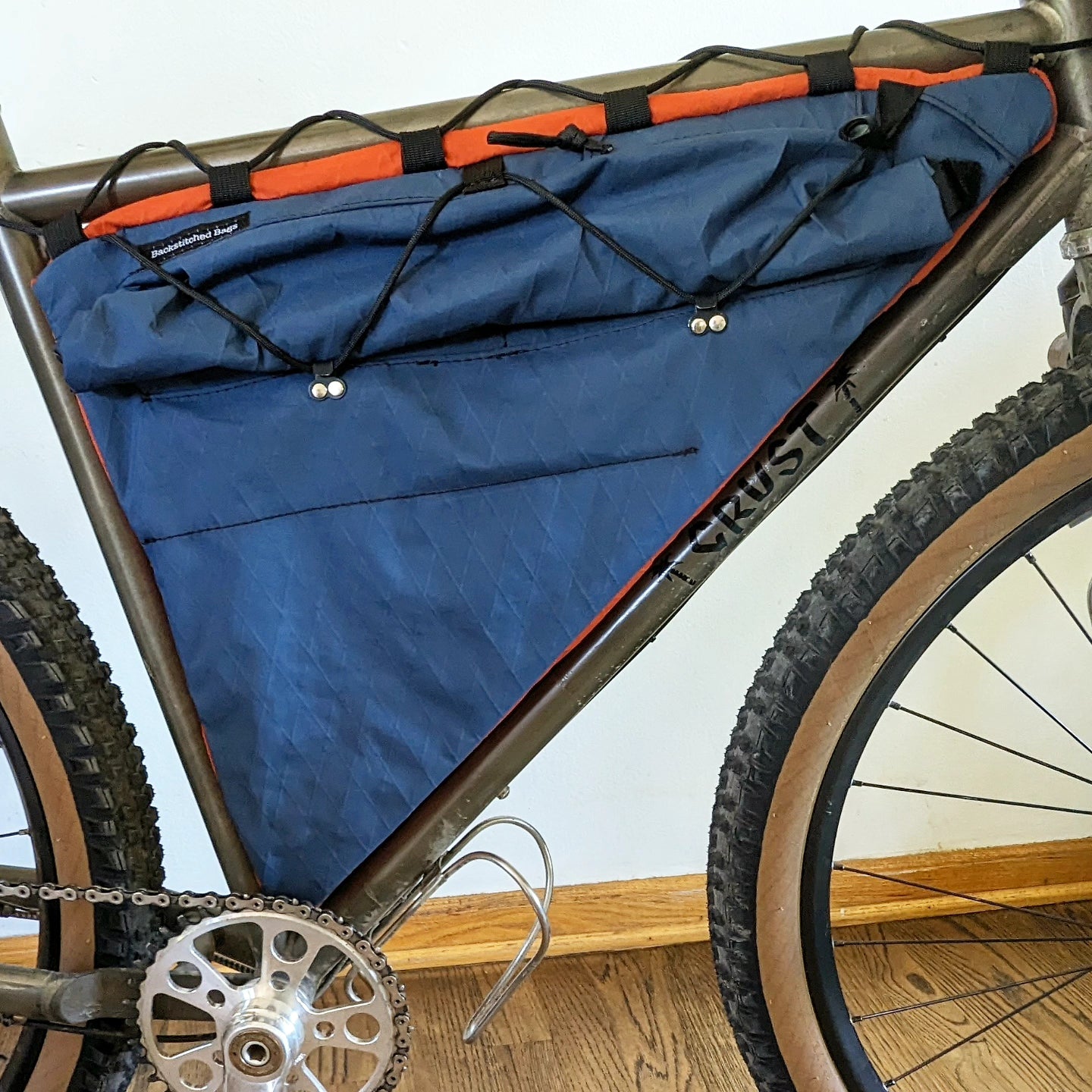 Frame bags are a key part to any bike packing or cargo-commuting set up. Optimize your storage with a frame bag that is fit to your frame and with organizational features of your choosing. Features include zippered, roll top or messenger bag openings; multi-pocket design, drive side and non drive side pockets and internal pocket storage; bolt on mounting, lace on mounting or strap on mounting and more.